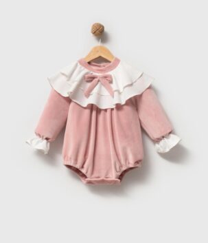 Kız Bebek Pudra Kadife Tulum