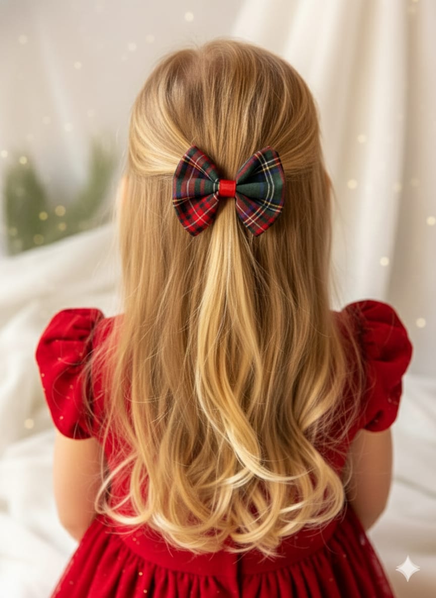 Kız Çocuk Ekose Klipsli Fiyonk Toka
