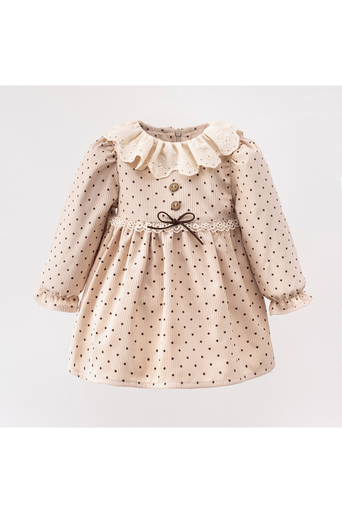 ”Kız Çocuk Bej ve Puantiyeli Elbise: Şıklığın ve Rahatlığın Mükemmel Dengesi”